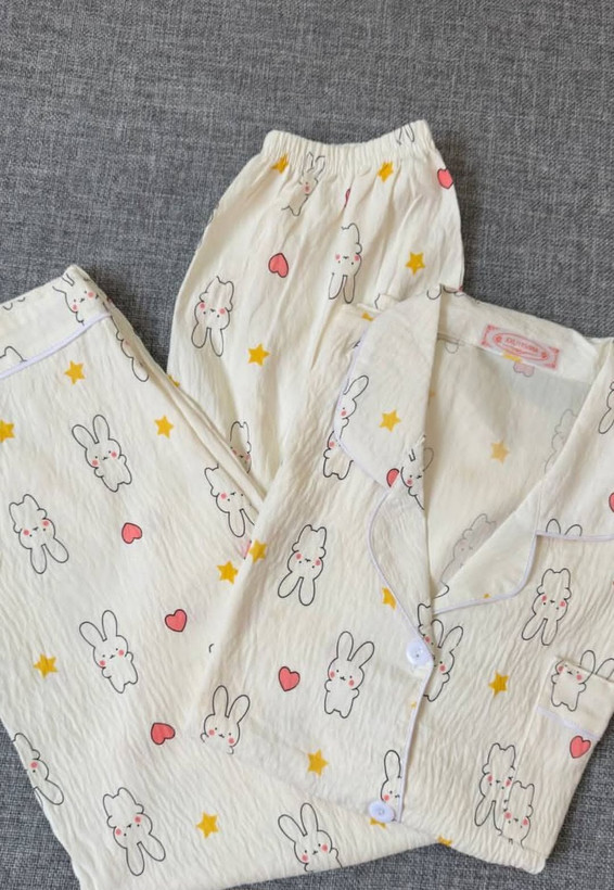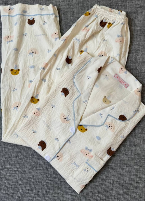 ست عروسکی لباس و شلوار مغذی دوزی شده آستین کوتاه